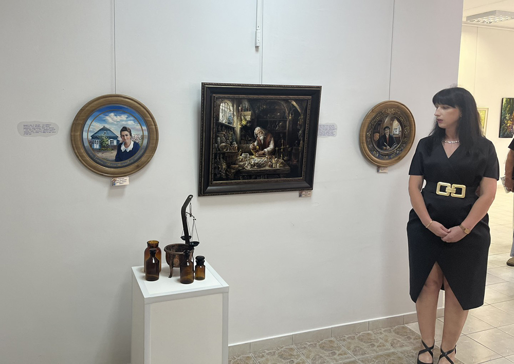 Среди картин на выставке есть и работы, связанные с аптечным делом в Беларуси.