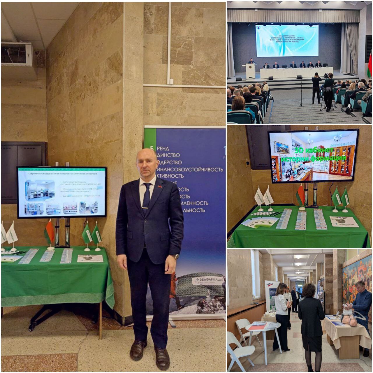 В рамках коллегии сотрудники информационно-фармацевтического центра РУП «БЕЛФАРМАЦИЯ» принимают участие в выставке – знакомят посетителей с электронными услугами, оказываемыми населению, новейшими разработками на предприятии, а также представляют виртуальный 3D тур по кабинету истории фармации, включающему около 3 тыс. исторических экспонатов с возможностью полного погружения и отвечают на вопросы посетителей.