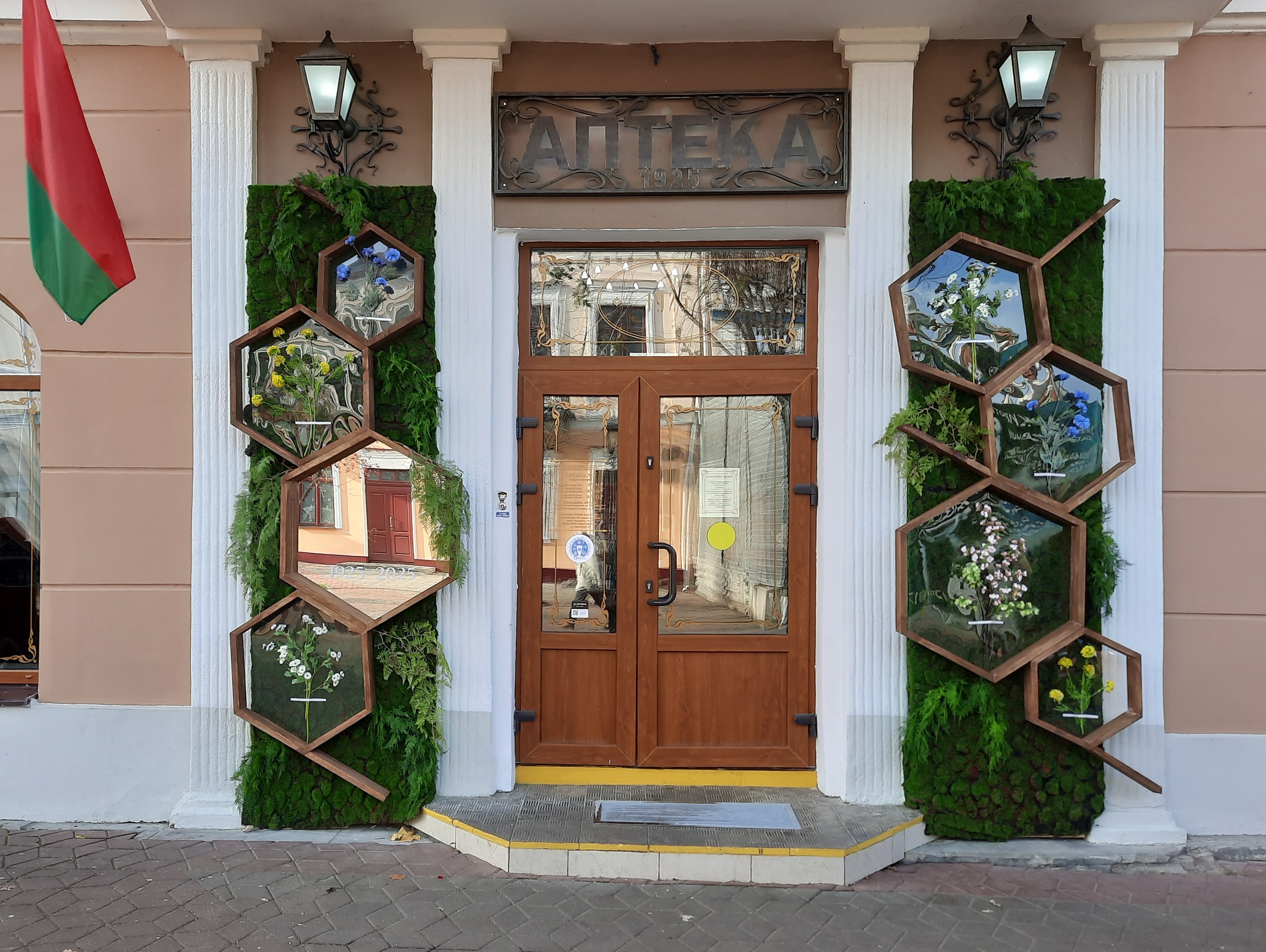 К юбилейной дате красочно оформлен вход в аптеку – в «бензойном кольце» расположен гербарий лекарственных растений. АРТ-объект привлекает не только посетителей аптеки, но и пешеходов и стал еще одним местом для селфи на улице Советской.