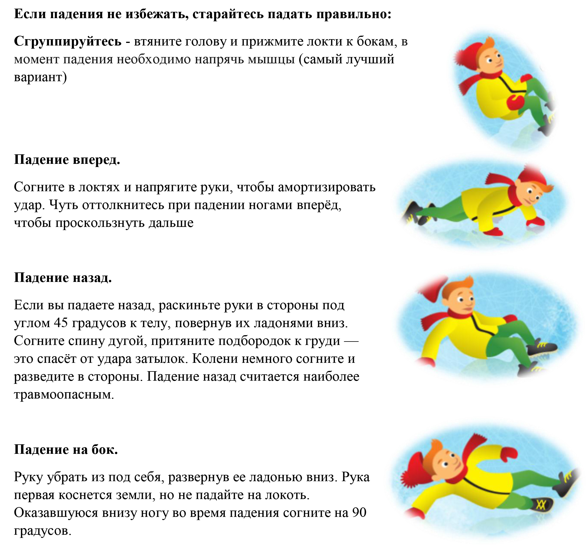 - Не держите в гололёд руки в карманах. Если вы поскользнулись – присядьте, это снизит высоту падения.