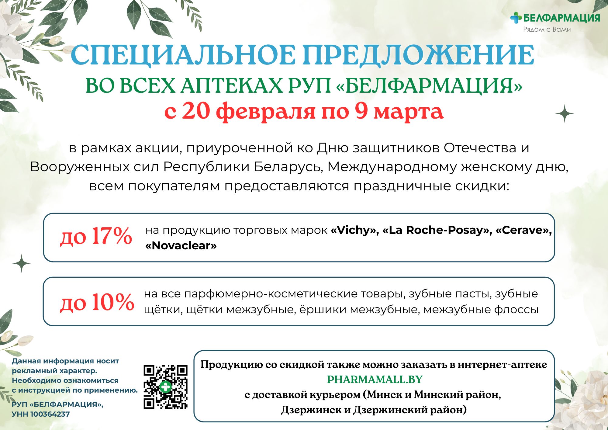 В преддверии наступающих праздников РУП «БЕЛФАРМАЦИЯ» приглашает в аптеки порадовать себя качественной аптечной косметикой или приготовить приятный сюрприз!