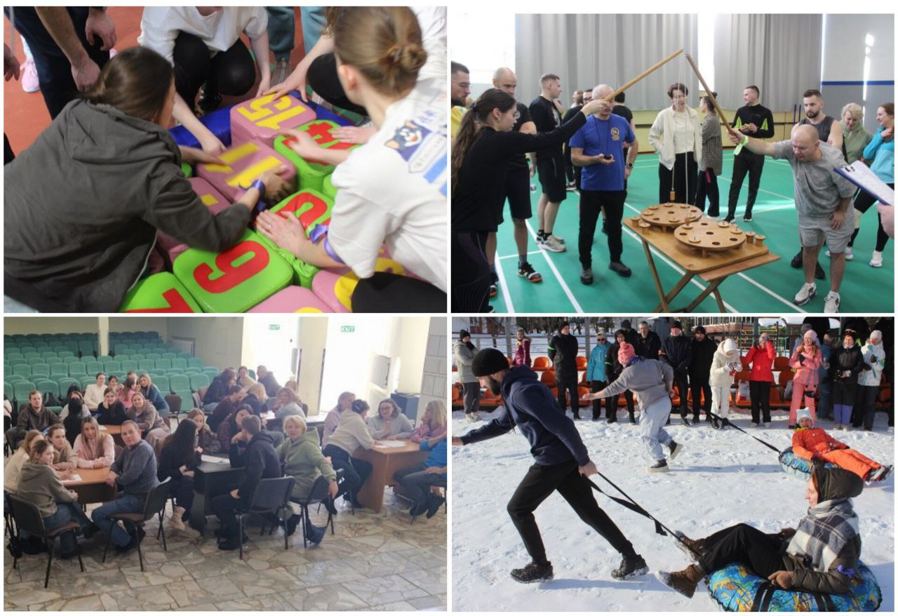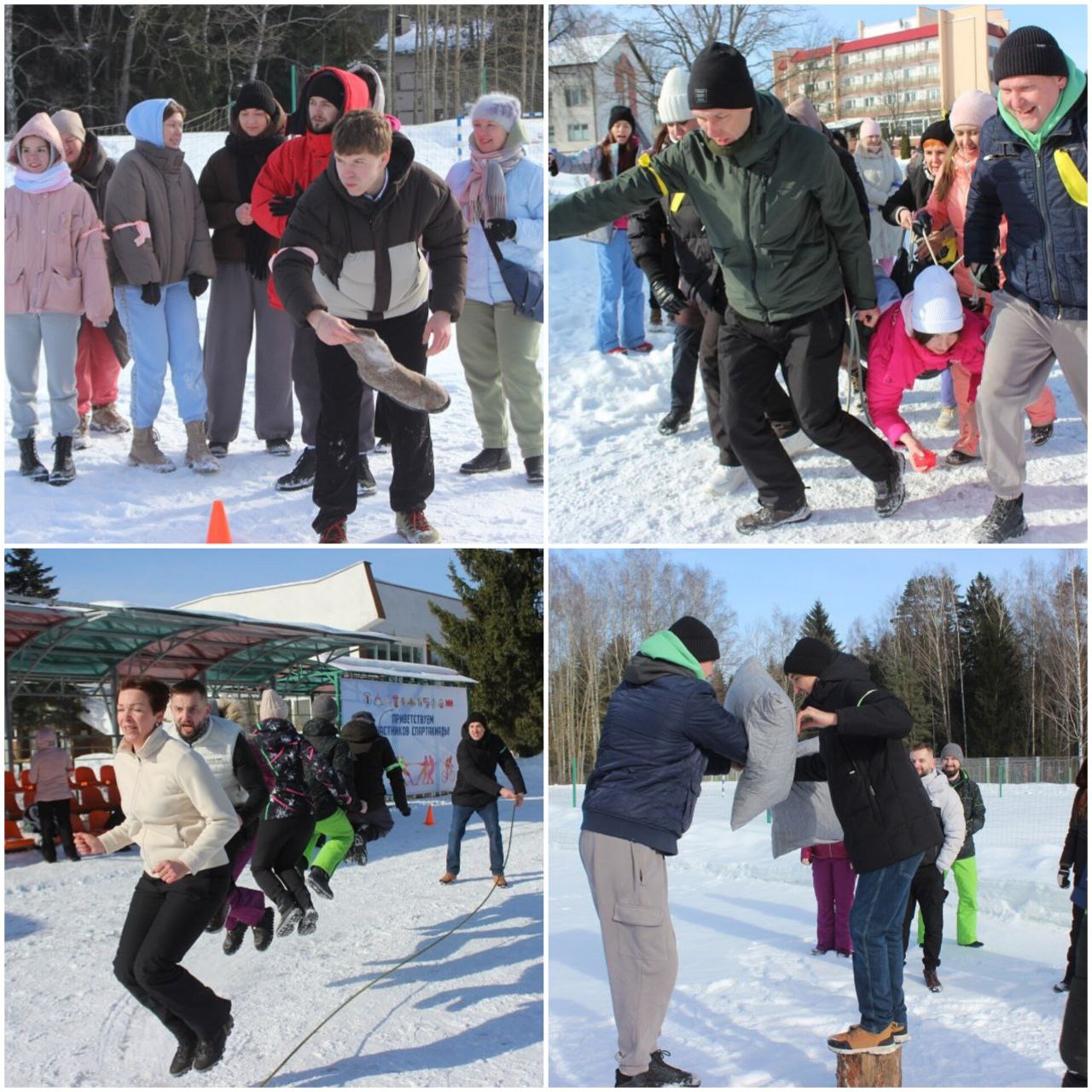 10 команд состязались в следующих активностях: эстафета «Гонки на тюбингах», «Самолет», «Бои подушками», «Гигантская скакалка», «Городки валенком», «Геометрические фигуры», «Беличье колесо», «Большая головоломка», «Рыбалка», «Корнхолл».
