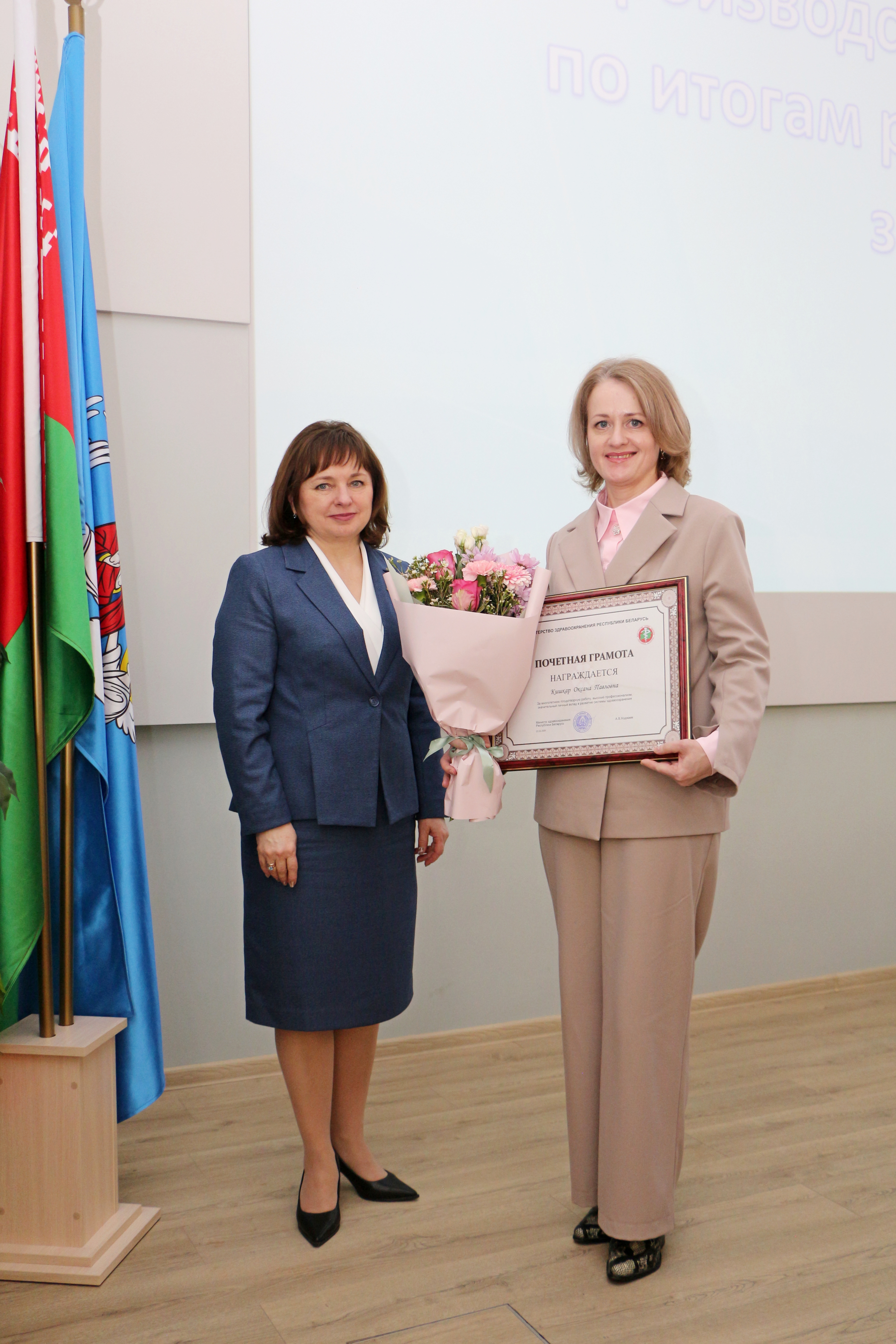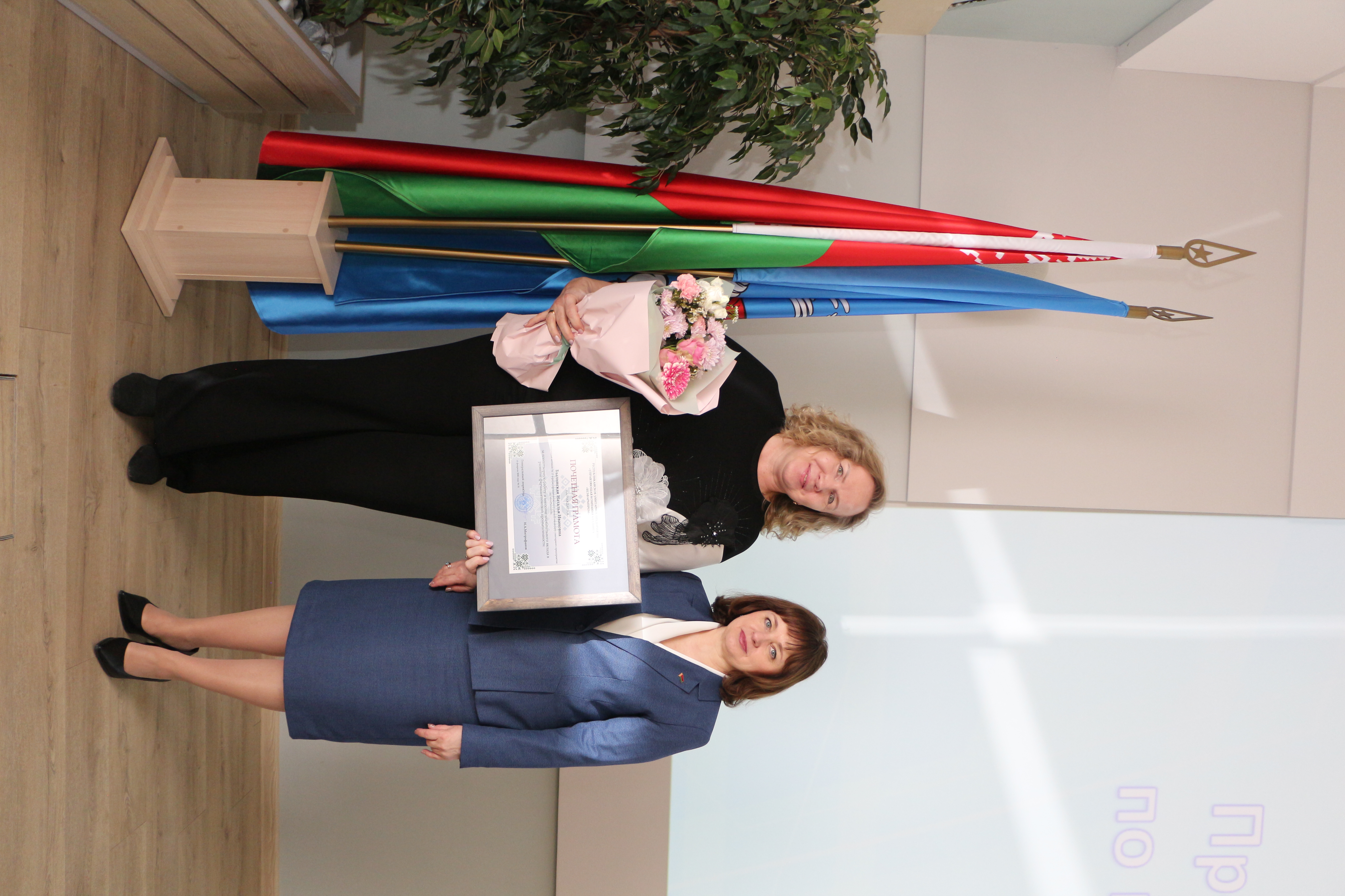 За плодотворную работу и внесение значительного вклада в развитие фармацевтической промышленности Почетной грамотой республиканского унитарного предприятия «Управляющая компания холдинга «Белфармпром» награждена