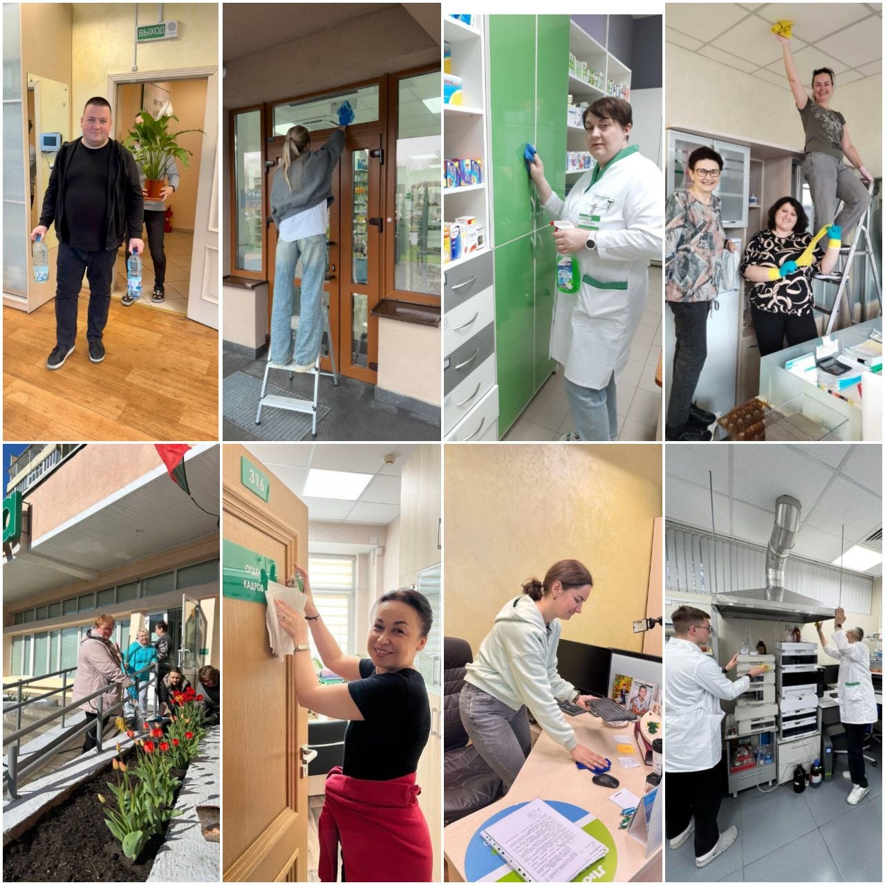 Сотрудники предприятия дружно вышли наводить порядок и убирать прилегающие территории: приводили в порядок рабочие помещения, газоны, убирали прошлогоднюю листву, очищали клумбы и высаживали цветы. Работа кипит с раннего утра – каждый нашел себе занятие по душе. Кто-то занимался покраской бордюров и скамеек, другие приводили в порядок зеленые насаждения, третьи высаживали цветочную рассаду.