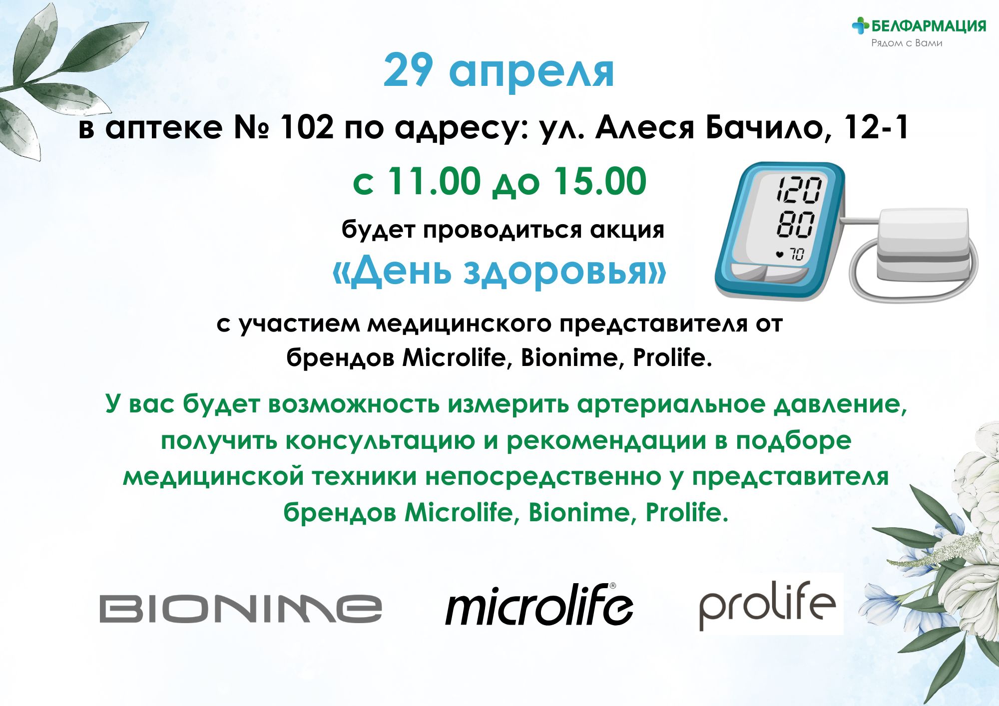 | 27 апреля 11.00 - 14.00 | Аптека №55 | ул. Калиновского, 55В |