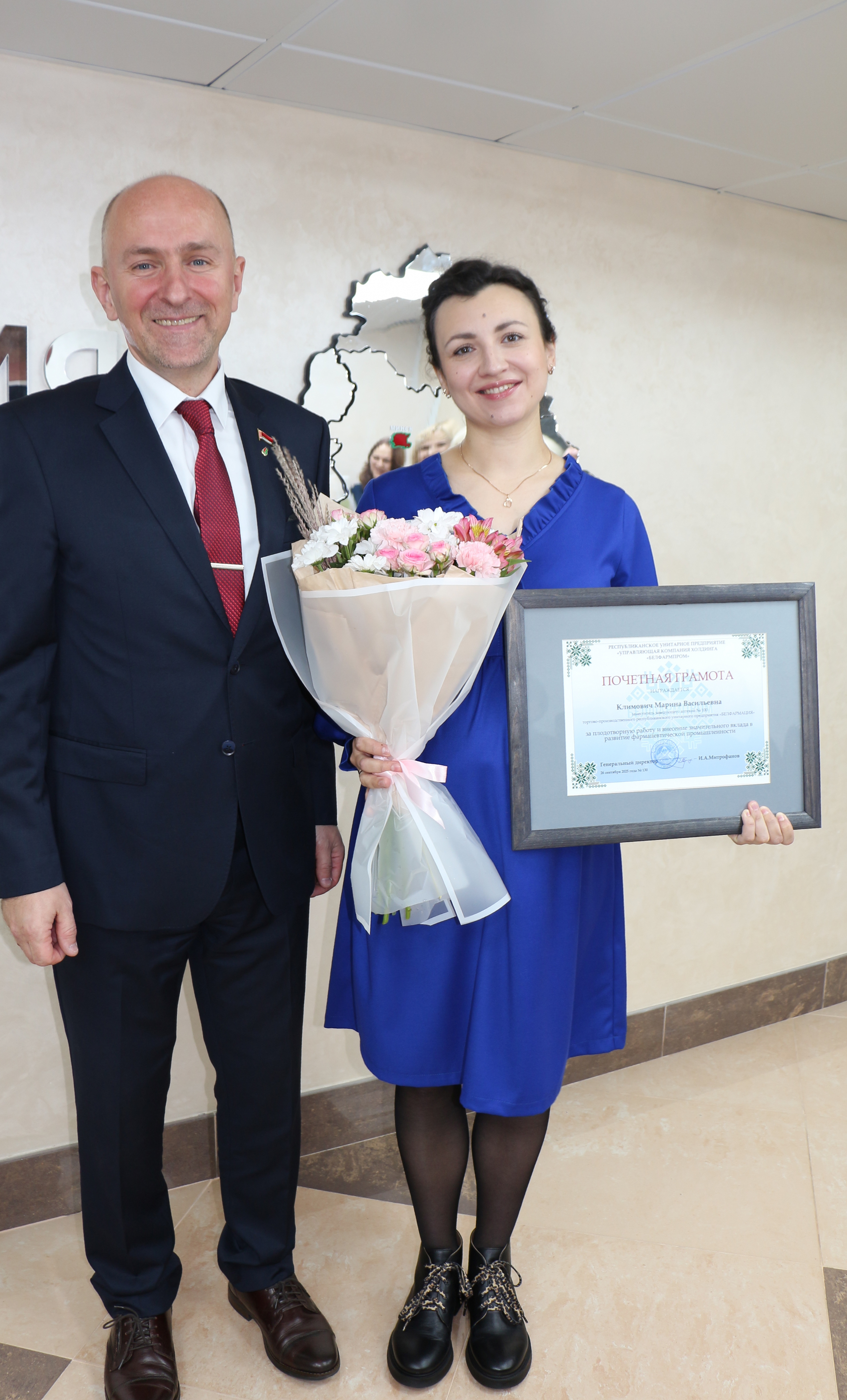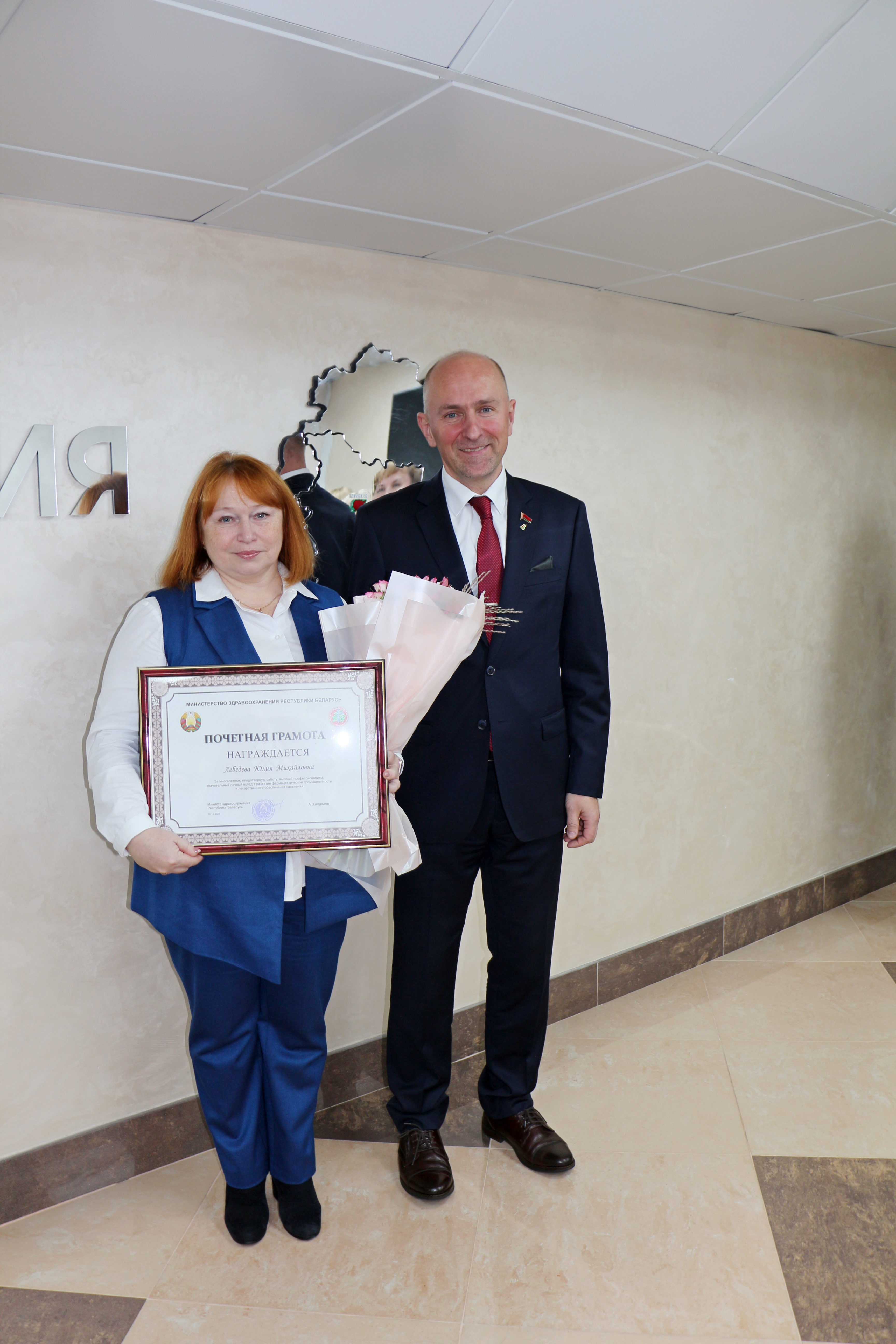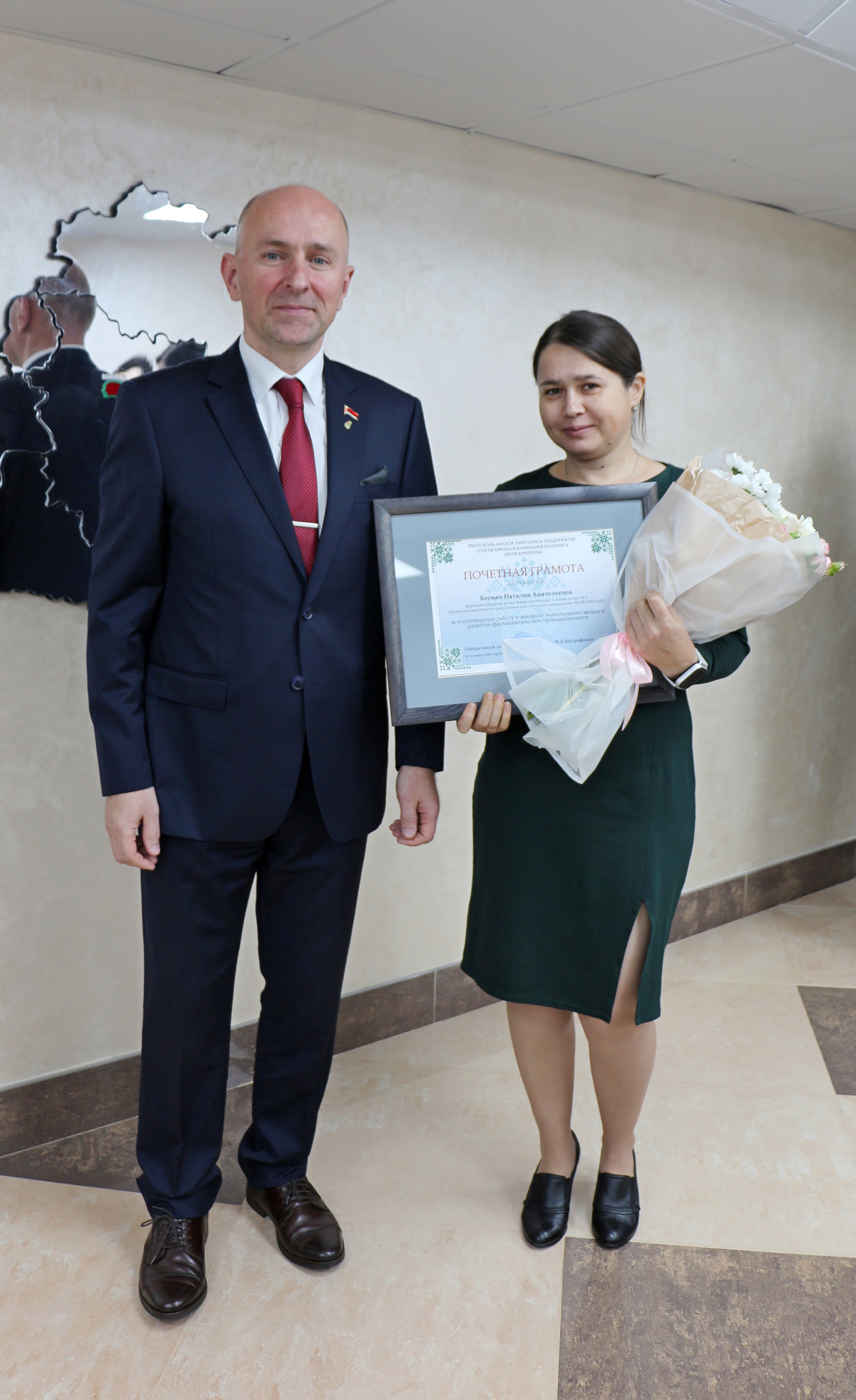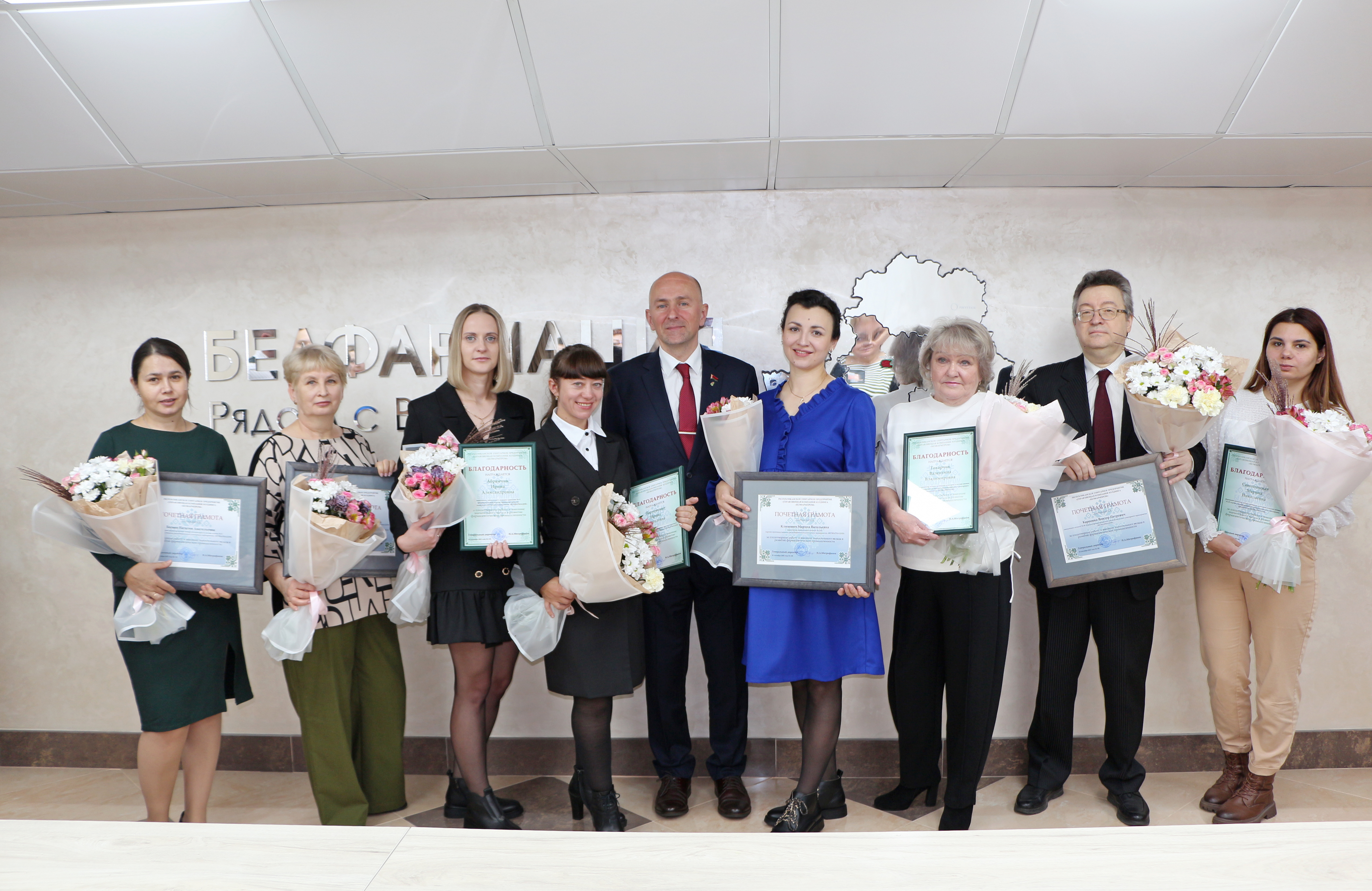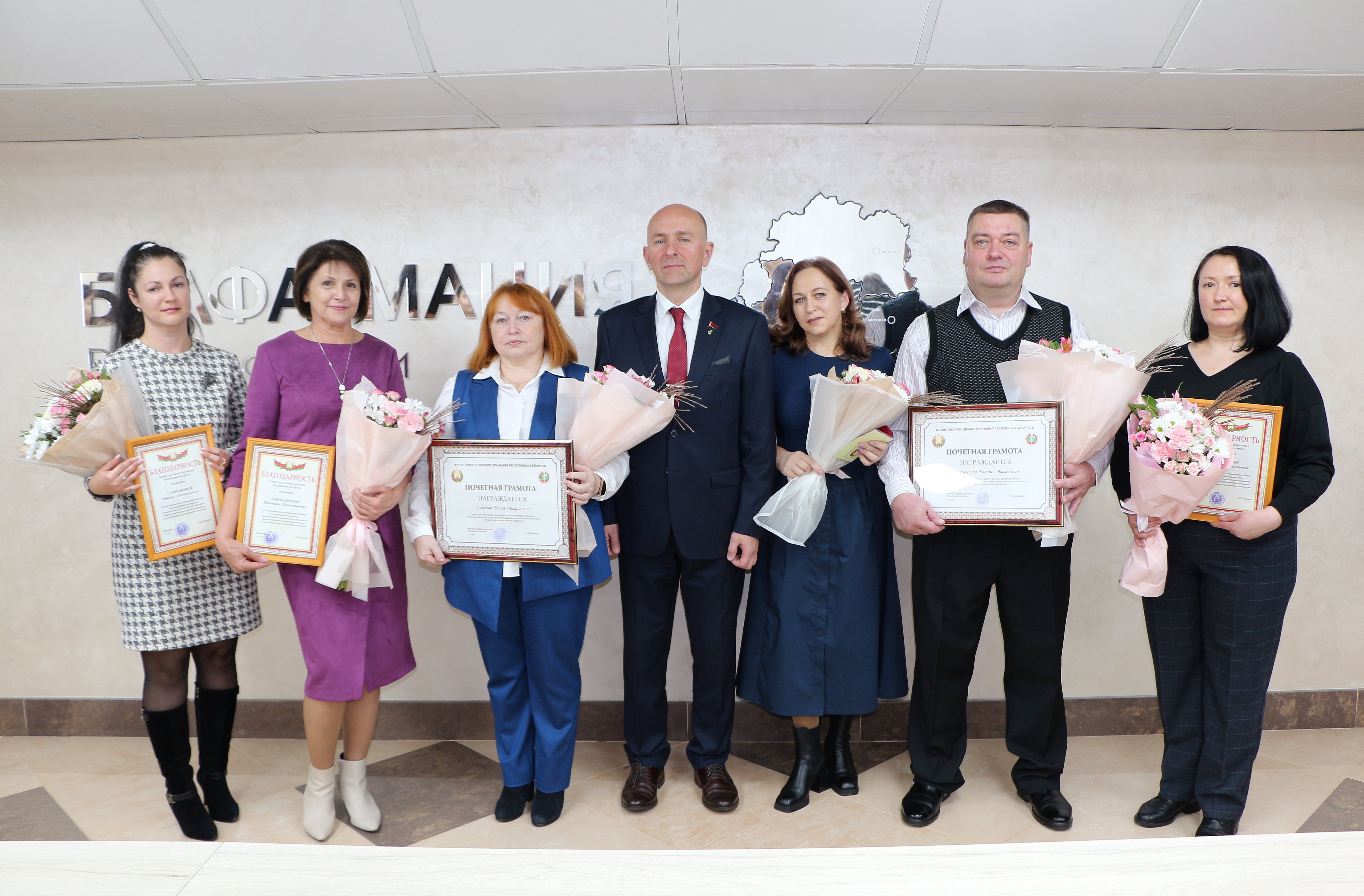 Отмечая высокий профессионализм и гуманные человеческие качества, высокие показатели в продвижении лекарственных средств отечественного производства и в связи с празднованием Дня работников фармацевтической и микробиологической промышленности лучшие труженики нашего предприятия РУП «БЕЛФАРМАЦИЯ» получили заслуженные награды.