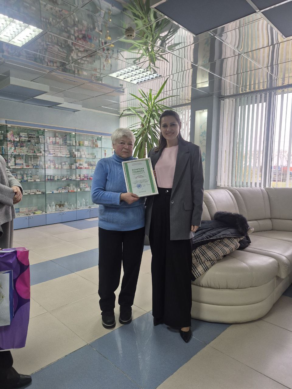 С юбилейной датой Абанович Зою Ивановну от предприятия поздравила заместитель заведующего аптечным складом Екатерина Котова. Она пожелала юбиляру крепкого здоровья, долголетия, душевного тепла, мира и благополучия. К поздравлениям присоединились заместитель председателя цехового комитета Татьяна Захарова и бывшие коллеги юбиляра, продолжающие работать на аптечном складе.